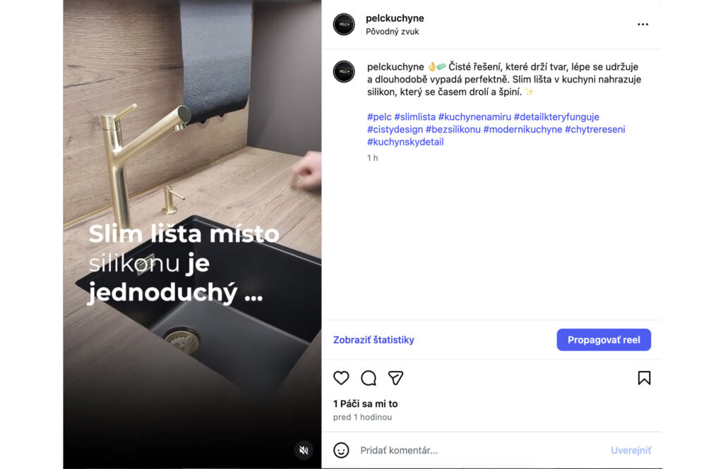 Prostřednictvím videí a Reels sdílíme chytré vychytávky, materiály a nápady, které pomáhají proměnit každou kuchyni v promyšlený a funkční domov.