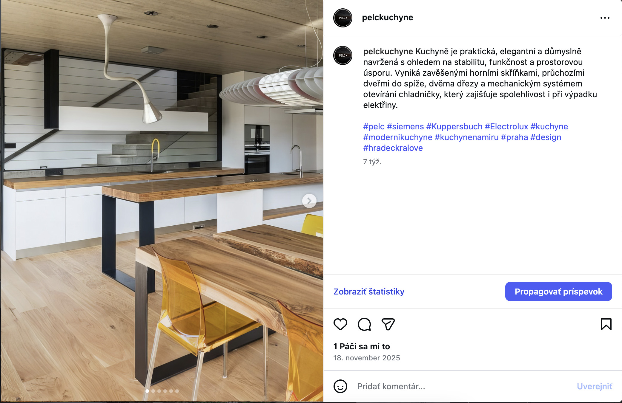 Instagram Pelc kuchyně je vizuální galerie našich kuchyní a interiérů, kde ukazujeme nejen hotové realizace, ale i detaily, které dělají rozdíl.